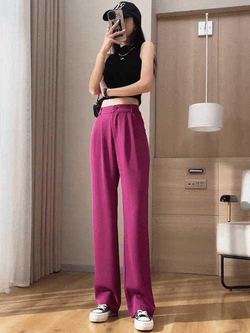 하이웨이스트 드레이프 일자핏 와이드 팬츠